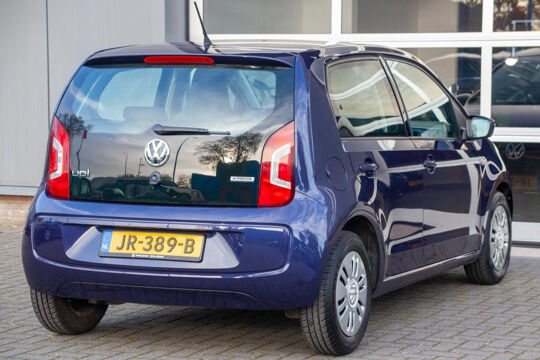 Van eerste eigenaar: in nieuwstaat verkerende Volkswagen Up! Uitgevoerd in mooie diepblauwe metallic kleur en smetteloos stoffen interieur. De goede rij eigenschappen zullen u verrassen; de zuinige en krachtige motor ook.